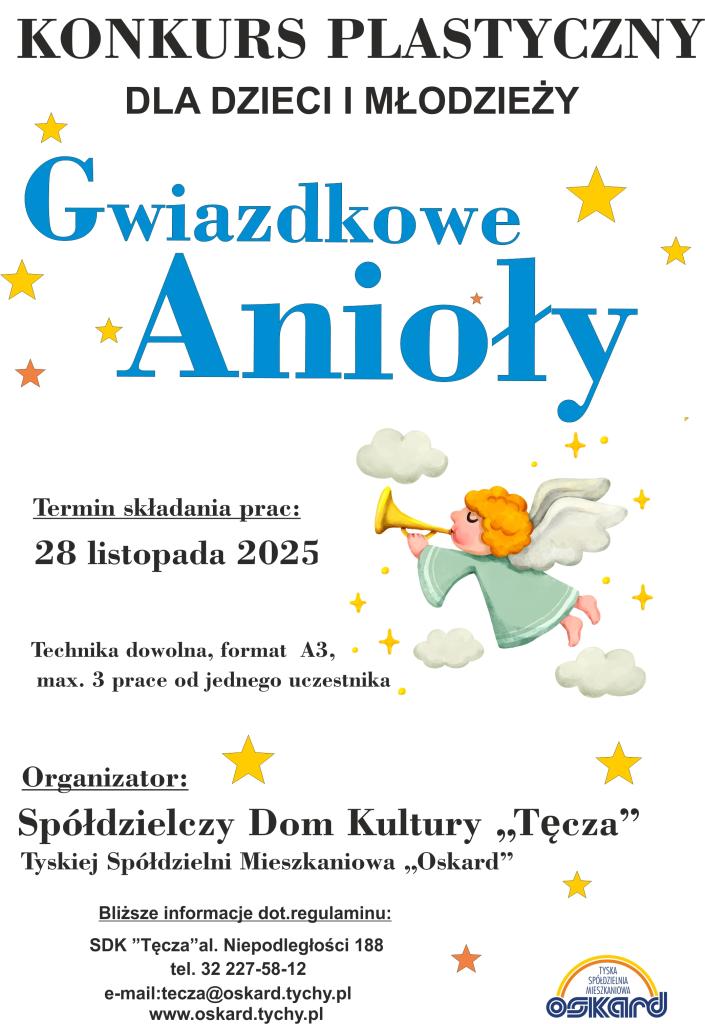 SDK "Tęcza" zaprasza do udziału w konkursie plastycznym "Gwiazdkowe Anioły".Szczegóły konkursu w załączonym regulaminie oraz w placówce, tel. 32 227 58 12 Gwiazdkowe Anioły 25doc.pdf załącznik nr 1 - Instytucje RODO VII 2019.pdf załącznik nr 2 - oświadczenie dla opiekuna RODO VII 2019.pdf Opublikowano: 2025-11-07 Kultura