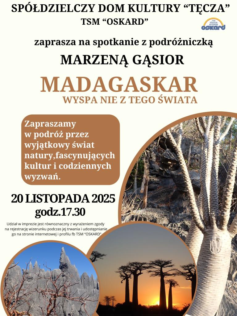 Zapraszamy w podróż przez wyjątkowy świat natury, fascynujących kultur i codziennych wyzwań. Świat, gdzie natura wymyśla własne, niespotykane reguły gry stając się gigantycznym laboratorium przedziwnej ewolucji. Świat będący areną walki ludzi o przetrwanie kolejnych dni. Opowiadać będzie Marzena Gąsior - biolog, przyrodnik, podróżnik, przewodnik górski, pilot wycieczek, nauczyciel biologii i informatyki. Odwiedziła ponad 70 krajów. Uwielbia podróże w miejsca nieoczywiste. Najchętniej poznaje świat z perspektywy siodełka rowerowego, choć nie obce jej piesze włóczęgi, trekkingi w wysokich górach, eksploracja jaskiń czy wspinaczka. Z podróży przywozi głównie emocje, wspomnienia i przyjaźnie. Do tego setki fotografii, różne znaleziska i kulinarne przepisy.