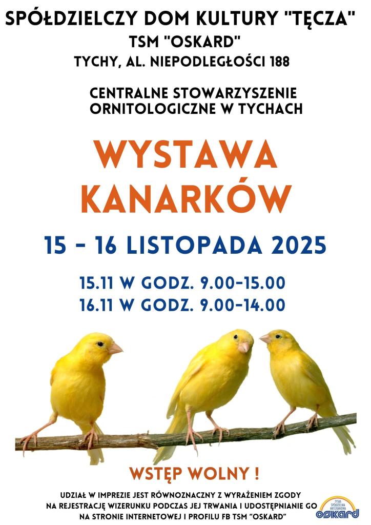 SDK "Tęcza" zaprasza na wystawę kanarków 15-16.11.2025 Bliższe informacje na załączonym plakacie oraz w placówce, tel. 32 227 58 12 Opublikowano: 2025-11-05 Kultura