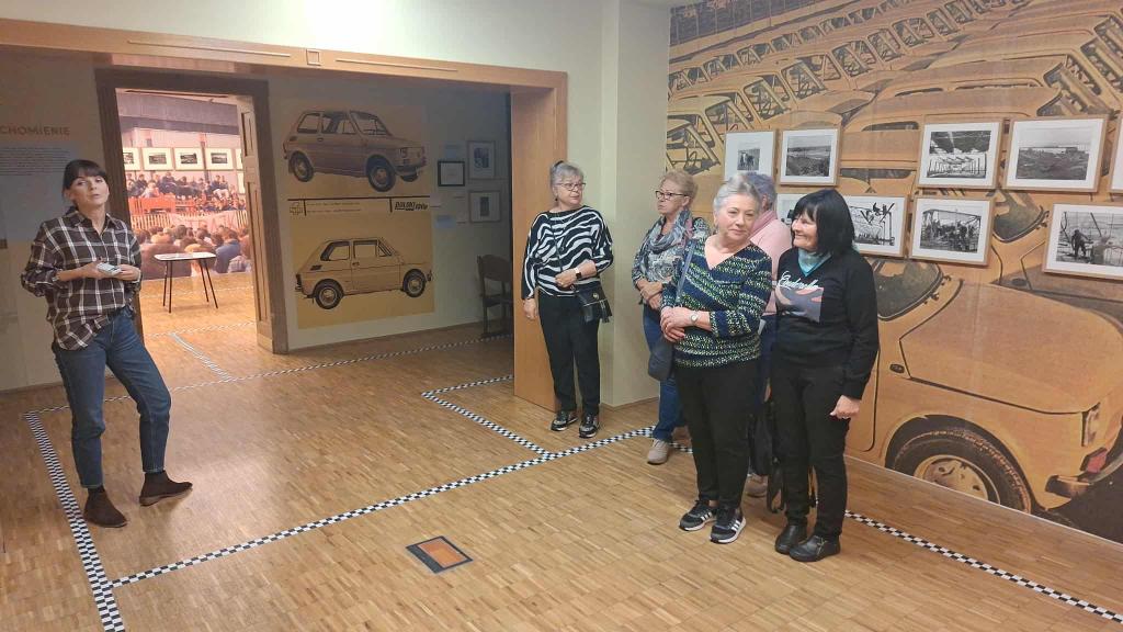 Uczestnicy spotkania mieli okazję zapoznać się z ekspozycją pod opieką kuratorki wystawy, pani Agaty Berger-Połomskiej – historyczki, która w przystępny i angażujący sposób przybliżyła historię FSM. Zwiedzanie rozpoczęło się od wprowadzenia zawierającego dane statystyczne oraz informacje o modelach samochodów produkowanych niegdyś w fabryce, jak i tych wytwarzanych współcześnie. Uczestnicy mieli okazję prześledzić ścieżkę produkcyjną dawnych zakładów, szczególną uwagę poświęcając procesom technologicznym z lat 70. i 80., w tym produkcji Fiata 126p.