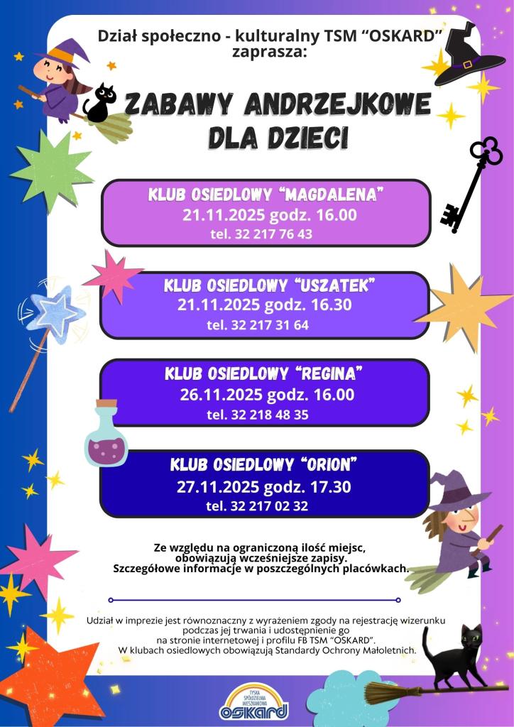 Dział Społeczno - Kulturalny zaprasza na zabawy andrzejkowe dla dzieci i dorosłych.