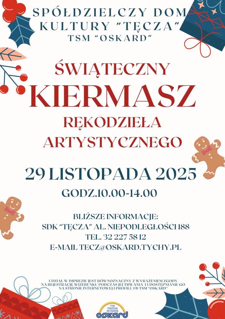 Tworzysz rękodzieło zapraszamy do współtworzenia grupy wystawców na Świątecznym Kiermaszu Rękodzieła, który odbędzie się w Spółdzielczym Domu Kultury „Tęcza” w dniu 29 listopada 2025r.