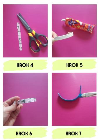 - Do każdej z bransoletek utnij po dwa kawałki wstążki dowolnego koloru.