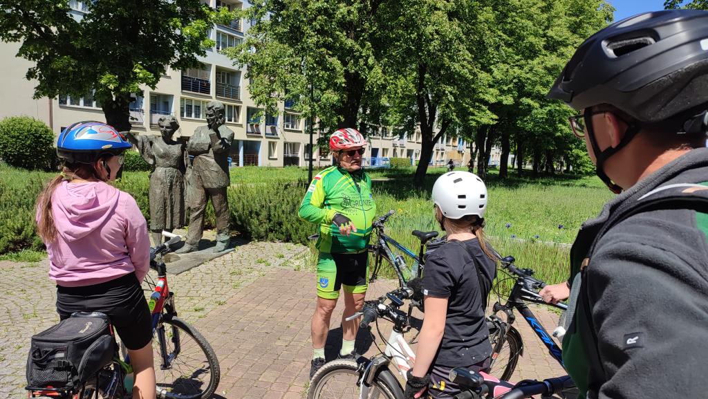 12 maja br. Spółdzielczy Dom Kultury „Tęcza” działający przy Tyskiej Spółdzielni Mieszkaniowej „OSKARD” oraz Klub Turystyki Kolarskiej „GRONIE” zorganizowały dla mieszkańców wycieczkę rowerową z cyklu „cudze chwalicie, swego nie znacie”. Trasa zwana „Tyską Pętlą Rowerową”, to łatwy szlak przebiegający przez Tychy, podczas którego można poszerzyć swoją wiedzę na temat zabytków miasta, a także poznać jego walory krajoznawcze. Punktualnie o godz. 10.00 pod napisem „TYCHY” przy Urzędzie Miasta, stawiła się grupa cyklistów, a wśród nich- rodziny z dziećmi oraz członkowie KTK „GRONIE”. Z ramienia naszej Spółdzielni kilometry kręciła Kierownik działu społeczno – kulturalnego Gabriela Strzezik, a rolę przewodnika grupy pełnił wiceprezes ds. programowych KTK „GRONIE” Zbigniew Wojciechowski. Rowerowa eskapada rozpoczęła się spod Pomnika Walki i Pracy, potocznie zwanego „Żyrafą”, zaliczając kolejno wszystkie punkty kontrolne trasy, przy których podczas krótkiego postoju pan Zbigniew opowiadał ciekawostki historyczne. Trasa, zgodnie z opisem nie była wymagająca, a przyjemna pogoda dopełniała pozytywnych doświadczeń. Najtrudniejszym etapem pętli okazał się przejazd wokół jeziora Paprocany, ze względu na duży ruch pieszo-rowerowy. Na szczęście zielone stroje członków turystyki rowerowej „GRONIE” okazały się być świetnym znakiem orientacyjnym dla naszych kolarzy, dzięki czemu tempo oraz miejsce w peletonie zostały utrzymane. Abstrahując od walorów krajoznawczych i historycznych, wspólny wypad był doskonałą okazją do wspólnych rozmów, wymiany doświadczeń i nawiązania nowych znajomości. Niestrudzeni uczestnicy bezpiecznie dotarli na metę pętli, gdzie po udokumentowaniu przejechania pełnej trasy będą mogli otrzymać imienny certyfikat uprawniający do zdobycia okolicznościowej odznaki. Dziękujemy miłośnikom dwóch kółek „GRONIE” za bezinteresowne zaangażowanie się w promocję turystyki kolarskiej wśród mieszkańców Spółdzielni oraz zapewnienie bezpieczeństwa na trasie.