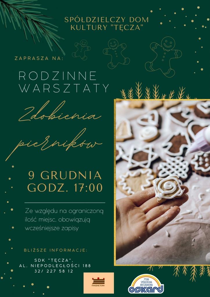 Zapraszamy 9 grudnia na rodzinne, przedświąteczne warsztaty zdobienia pierników do SDK "Tęcza". Wraz z zaprzyjaźnioną herbaciarnią Maszkieteria, miło spędzimy czas wśród zapachu piernikowych ciasteczek.