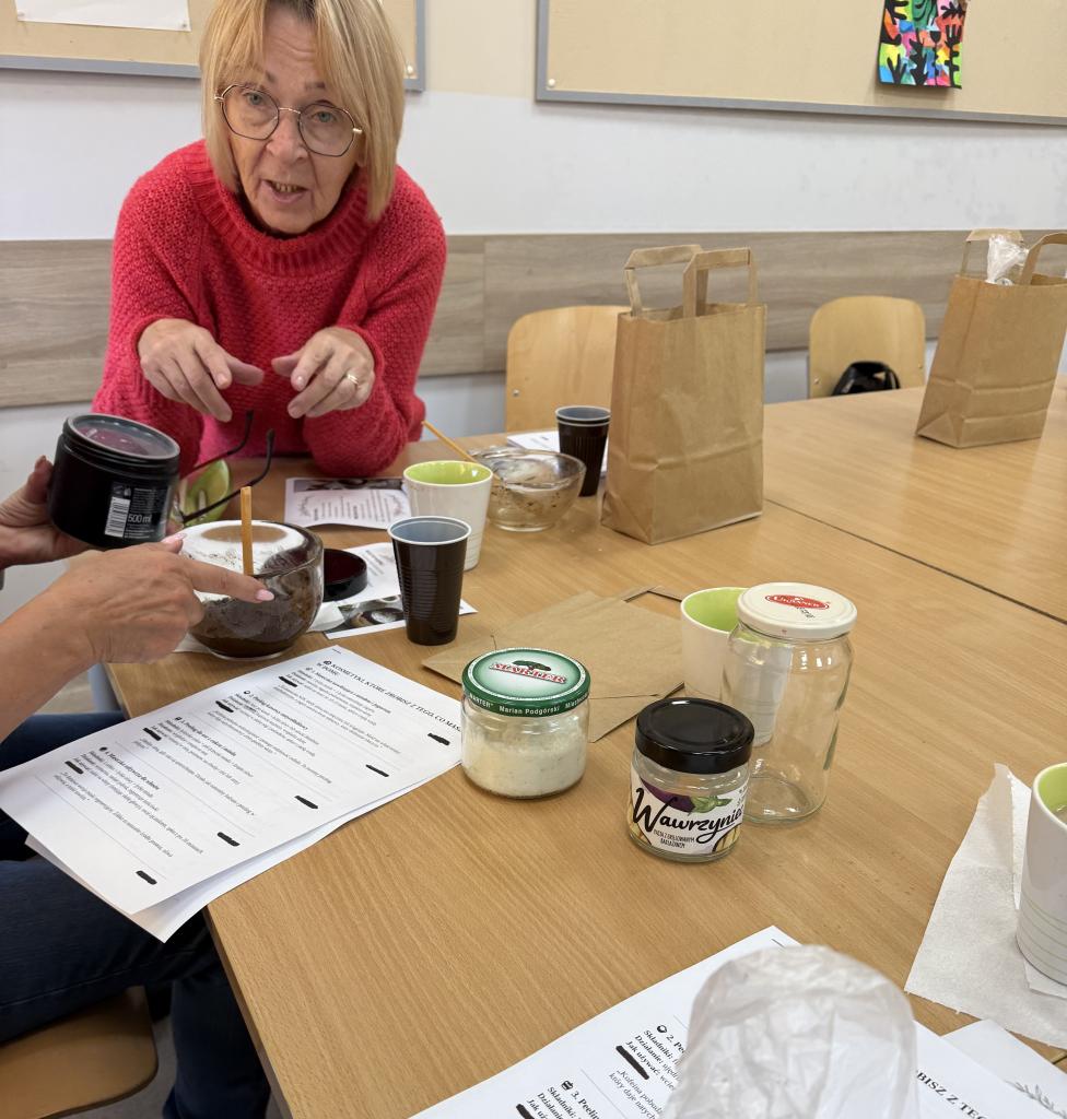 25 października br. nasze Panie miały okazję spróbować swoich sił w tworzeniu naturalnych kosmetyków z tego, co mamy w domu! Powstały cudownie pachnące sole do kąpieli oraz peelingi do ciała, które nie tylko pielęgnują skórę, ale też relaksują zmysły. Było dużo śmiechu, kreatywności i pięknych zapachów! Bo najlepsze kosmetyki to te, które robimy sami – z sercem i naturą w roli głównej.