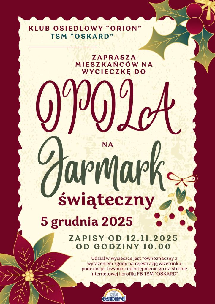 Klub Osiedlowy "Orion" zaprasza na wyjazd do Opola na jarmark świąteczny w dniu 05.12.2025.