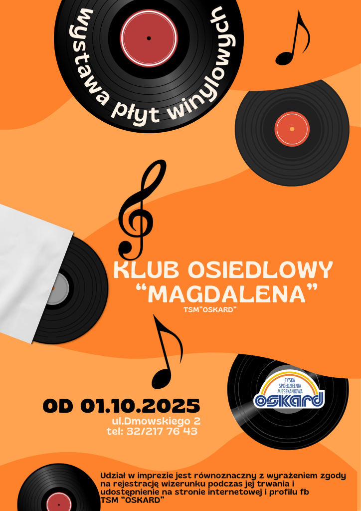 Klub Osiedlowy "Magdalena" zaprasza na wystawę płyt winylowych. Bliższe informacje na załączonym plakacie oraz w placówce, tel. 32 217 76 43 Opublikowano: 2025-09-30 Kultura